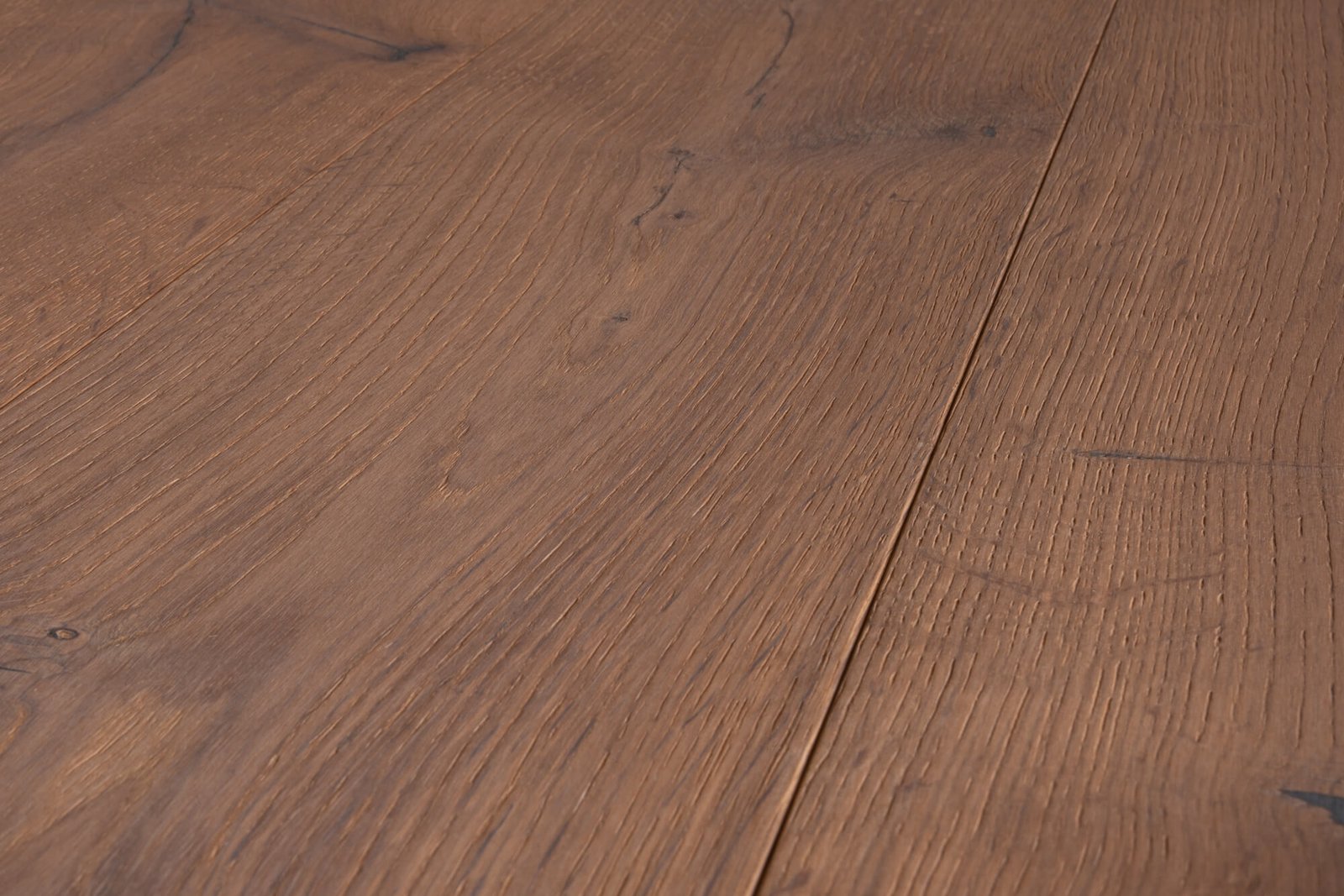• Durch die Bürstung der Oberfläche wird die Maserung des Holzes hervorgehoben, wodurch die Struktur der einzelnen Dielen besonders authentisch wirkt.