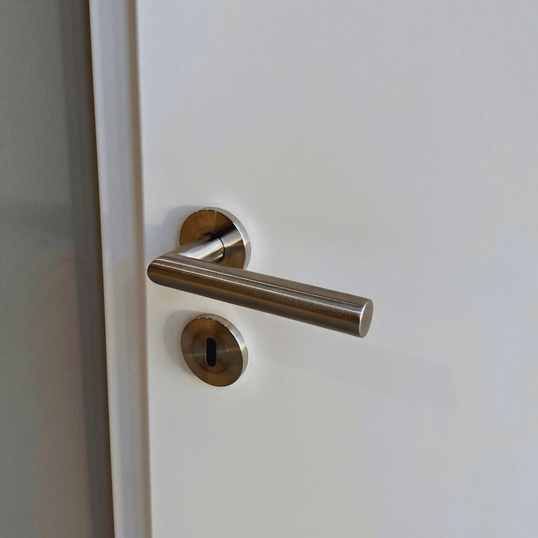Glatte CPL-Türen kannst Du sehr schön aufwerten, indem Du sie mit einem Stabilisator, dreiteiligem Band oder einem Flüsterfallen-Schloss kombinierst und das ohne große Preissteigerung.