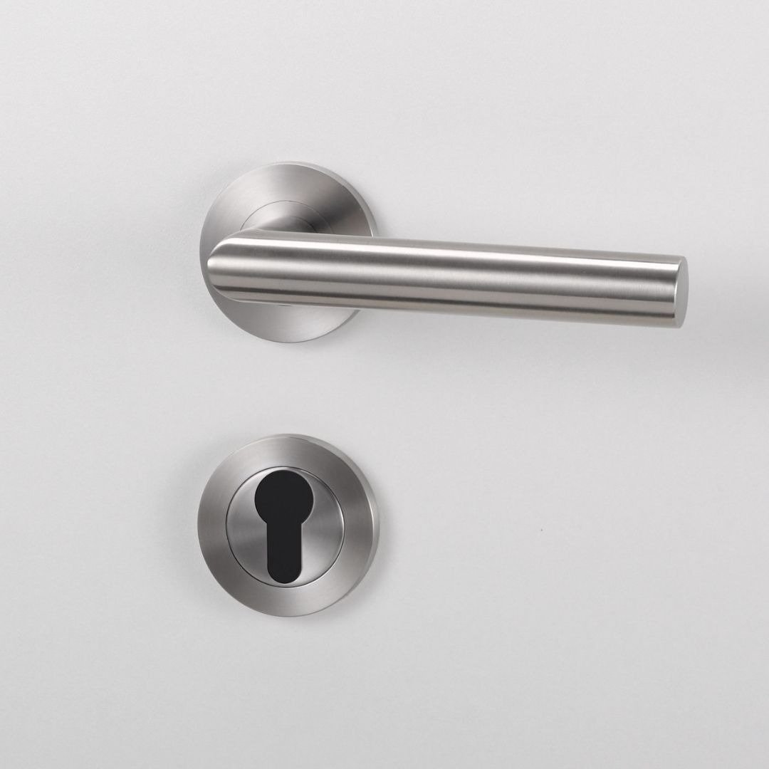 – Drücker festdrehbar gelagert auf der zweiteiligen Edelstahlrosette