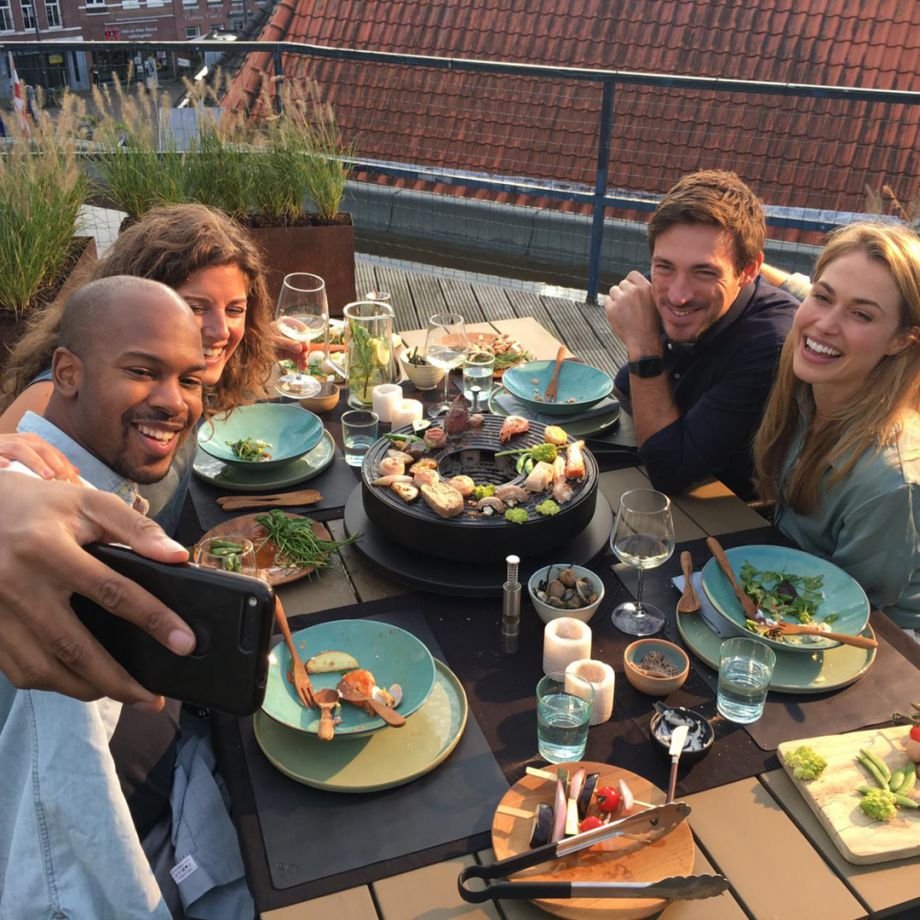 Kompakt, effizient und elegant. Der OFYR Tabl’O ist der ideale Tischgrill zum Zubereiten von gesunden und köstlichen Gerichten für 2-6 Personen. Der OFYR Tabl’O ist aus schwarz beschichtetem Stahl gefertigt und ruht auf einer hitzebeständigen Platte. Er wird mit einem Schnellstarter und einem praktischen Werkzeug zum Wenden der Kochplatte sowie zum Öffnen oder Schließen der Lüftungsöffnungen geliefert. Nimm Dir mehr Zeit zum geselligen Beisammensein und genieße gemeinsam die schönen Dinge des Lebens.