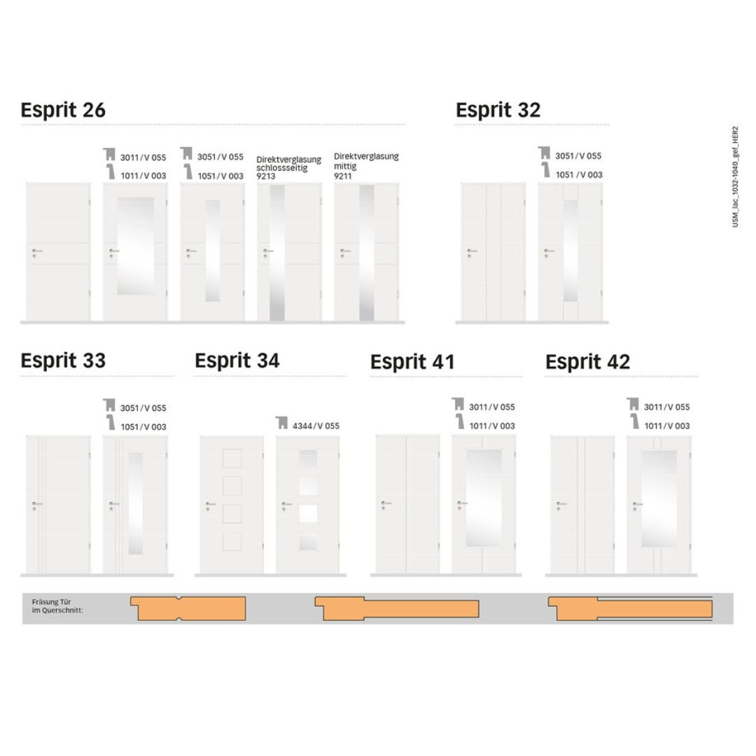 Mit ihrem sehr geradlinigen, modernen Design reihen sich die Türmodelle Esprit in die Tradition der reduziert gestalteten Türklassiker ein. Dabei gehen sie über die konsequente Betonung der Horizontalen hinaus und kombinieren diese mit den charakteristischen vertikalen Linien. In der stumpf einschlagenden Ausführung verstärkt dessen geradliniges, flächenbündiges Design die ausdrucksstarke Wirkung und sorgt für eine Spur Extravaganz. Lassen Sie sich von der Vielfalt inspirieren und setzen Sie Akzente!