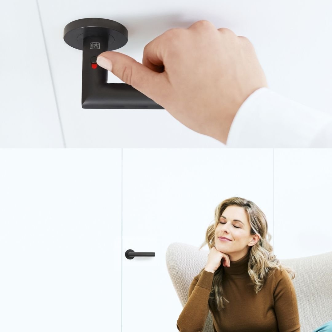 smart2lock von GRIFFWERK ermöglicht Me-Time: Die im Griff integrierte Schließmechanik sorgt mit einem Klick für geschlossene Räume, und damit für mehr Konzentration, mehr Privatsphäre, mehr Freiraum.