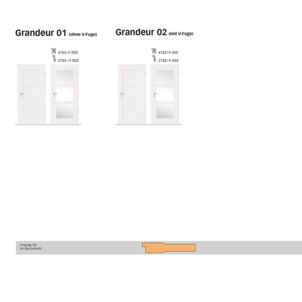 Mit der modernen Innentür Grandeur, bestätigt Herholz seinen Ruf als Trendsetter. Zielgruppe sind trend - aber auch klassisch orientierte, preisbewusste Kunden. Die Oberfläche der erfolgreichen Türenserie überzeugt auch durch ihre brillante Verarbeitung in den Fräsungen und tollen Gebrauchseigenschaften. Gerade in der Ausführung mit dem besonderen Stilmittel „V-Fuge“ zeigt sich exklusives Design auf höchstem Niveau. Das Modell ist in den Ausführung mit oder ohne V-Fuge erhältlich.